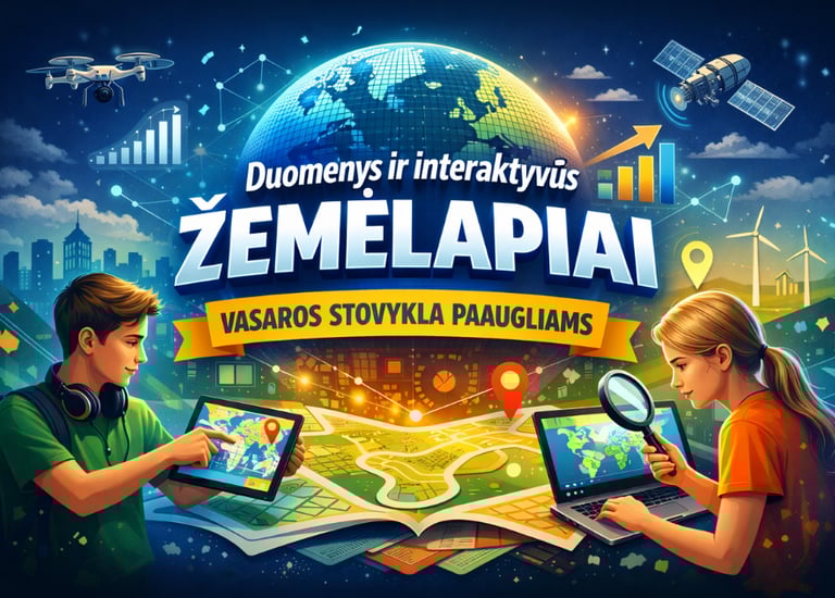 Čia mokysimės dirbti su duomenimis, kurti interaktyvius žemėlapius ir analizuoti realias situacijas.